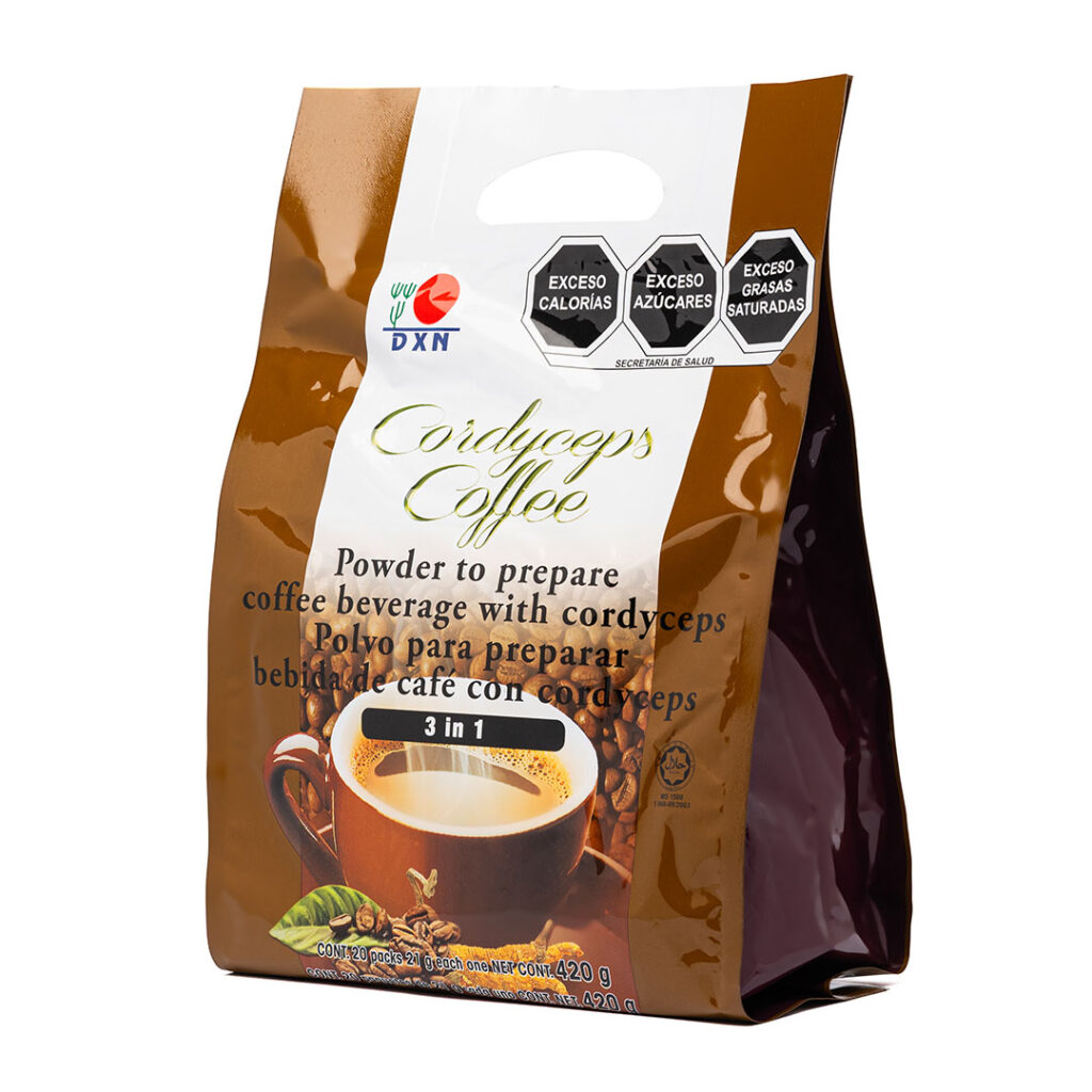 DXN Cordyceps Coffee 3 en 1 está especialmente formulado a partir de polvo de café instantáneo añadido con extracto de Cordyceps. Esta formulación única hace que un café suave sea un café aromático para desaliñar tu día